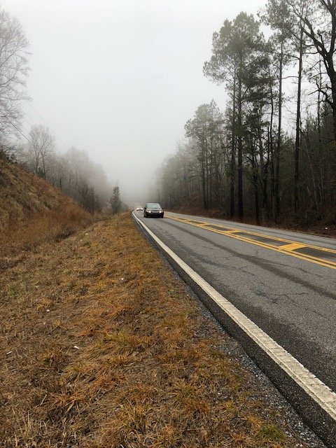 Turning onto CR-150 and crossing Weogufka Creek, I’m soon at the Dollar General in Stewartville. Time for a break (and some snacks) so in I go. Back out, shouldering my pack and preparing to head on down the trail, who drives up but none other than my dear friend, Joe, assistant caretaker up on Flagg Mountain. I’d contacted Joe earlier to see if he’d come take me back to my truck once my hike was finished today. “Just checking on you.” says Joe as he heads on over to US-280 to wait for me.