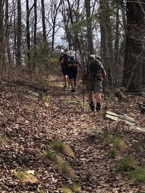 onto to the ridge beyond Highpoint. At the campsite near the old firetower we catch up with Ryan and Little John. They’re in the process of breaking camp as we pass and they soon come along to join us–and hike with us the remainder of the day.