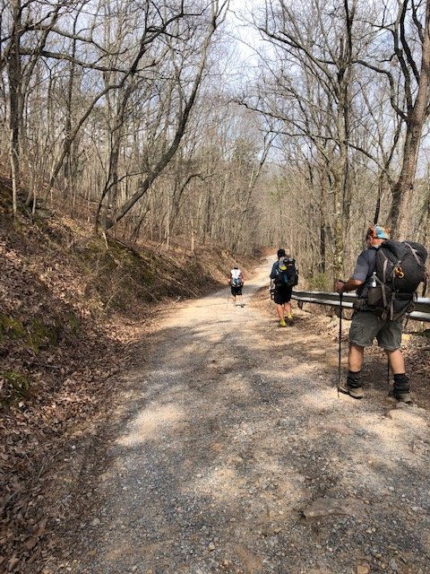 Happy times, sad times–had to bid goodbye to Angela last evening, then this morning, as Tim drops Copperhead and me off at Highpoint Trailhead, it’s farewell to him. Plans are for them to meet up and hike some with me on up the trail, so I’ll take solace in those thoughts for now.