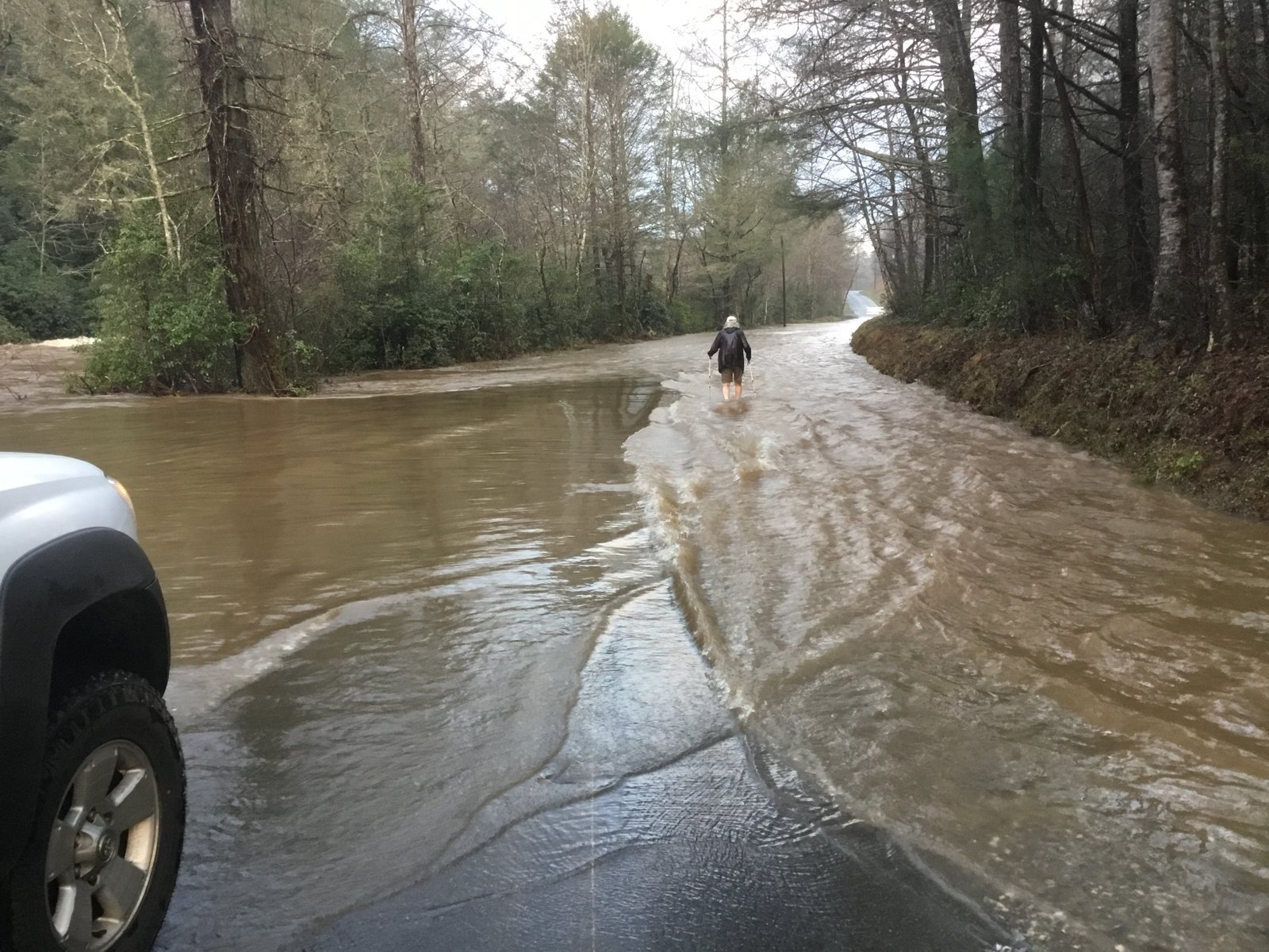 The storms have cleared out and are gone this morning, but not the flooding. Heading back to Shallowford Bridge we run into a problem, the Toccoa River is well above flood stage and is out of its banks. The road we’re on follows the