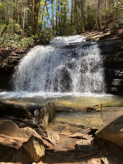 The morning passes quickly and I soon hear the roar of Long Creek Falls. Recent record rains have saturated the mountainsides and every little rivulet is running hard and fast, especially the larger streams–Long Creek is really running. Quite impressive!