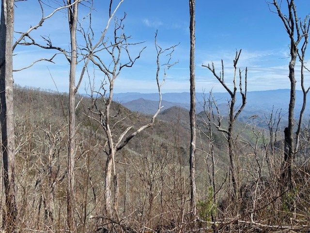 The climb from Tellico Gap to Wesser Bald is up and a bunch more up. Once there, another short climb up