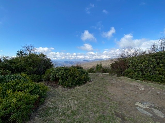 More high-mountain vistas today, especially from Rocky Top, which stands well above 5,000 feet. Just past, the next high rock outcropping, I remember seeing