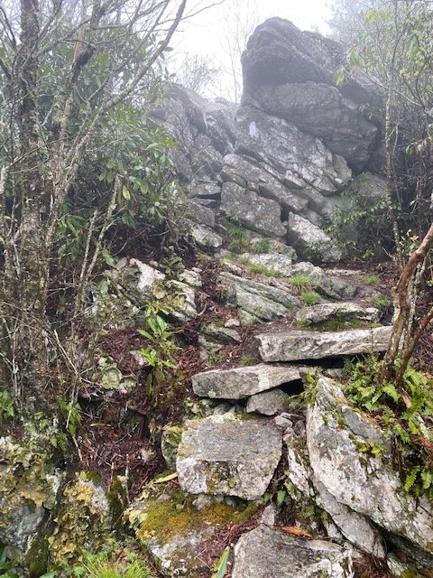 The trail starts out gentle enough, but no time comes my morning initiation. Up boulders, down boulders. Sheer treachery, the relentless rain making the boulders incredibly slick. It takes me two hours to go two miles.