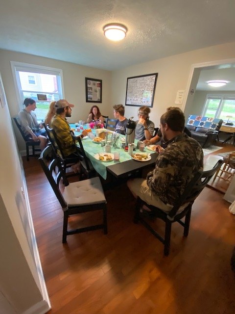 Joe Jenkins, a friend from the Nature Conservancy hard working control burn crew (who often stay at Flagg Mountain) is coming to hike some with me, and he arrives this morning–just in time for breakfast, kindly offered by Lady Di (and quickly accepted by Joe).