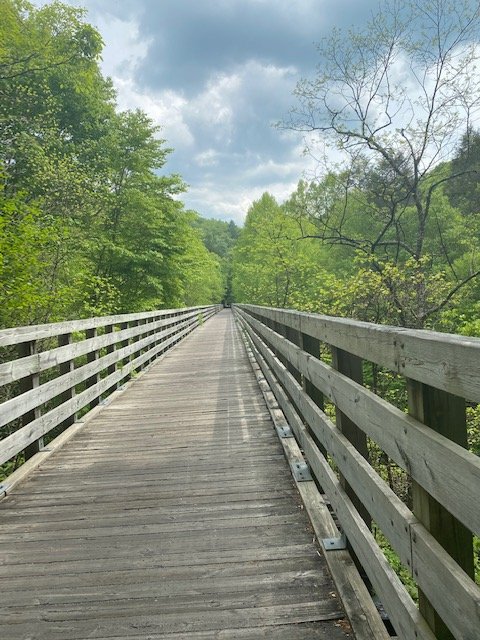 It’s a beautiful new day as Joe and I hike the streets of Damascus–to the Virginia Creeper Trail, and out of town. As usual, the climb begins immediately, up to the ridge line then around and over to the ever-climbing Virginia Creeper Rail Trail. Plenty of climbing for us too, a difficult section of the AT.