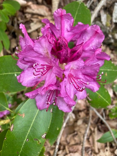 Late afternoon, still more climbing before the gentle descent through more rhododendron hells, to arrive US-58 right at five.