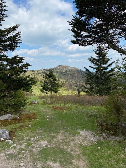 It’s a long, winding climb back to the trail crossing at US-58. But Stanley has Joe and me back on trail by quarter-to-eight. It’s shaping up to be a perfect day for hiking Grayson Highlands.