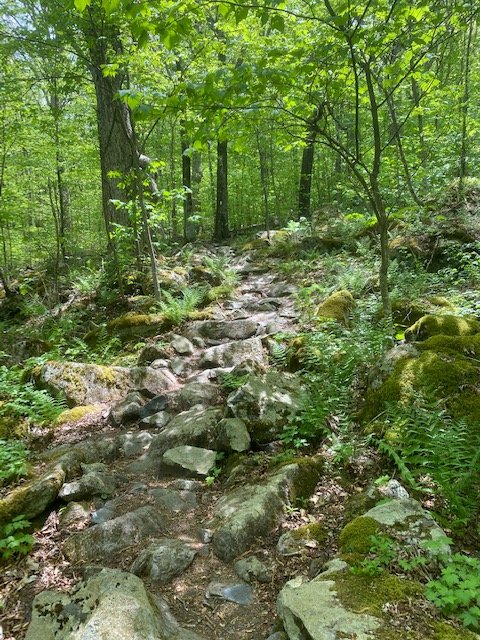 Late morning, Stanley comes up to an intermediate road crossing to bring me lunch. Joe decides he needs to go home, so he leaves the trail and returns to his car with Stanley. I hike the remainder of the day alone. Stanley comes for me in the evening and we return to his little pop-up camper. Days like this one–what memories are made of…