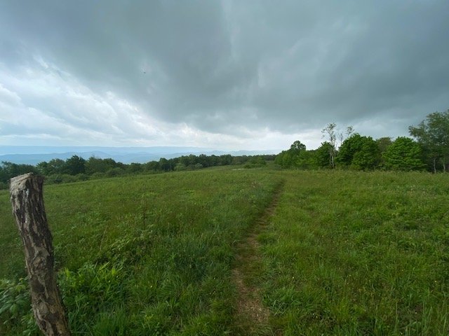 Such a blessing, Rachel Lock has flown in from Texas, rented a car, and has come to support me the next few days. She’s waiting for the wore out, bedraggled Nimblewill at the VA-623 road crossing (Rachel is granddaughter of Kate Prater, fire-spotter at Flagg Mountain for 38 years). She’s brought a bright smile, a much-needed solid hug–and a BBQ sandwich!