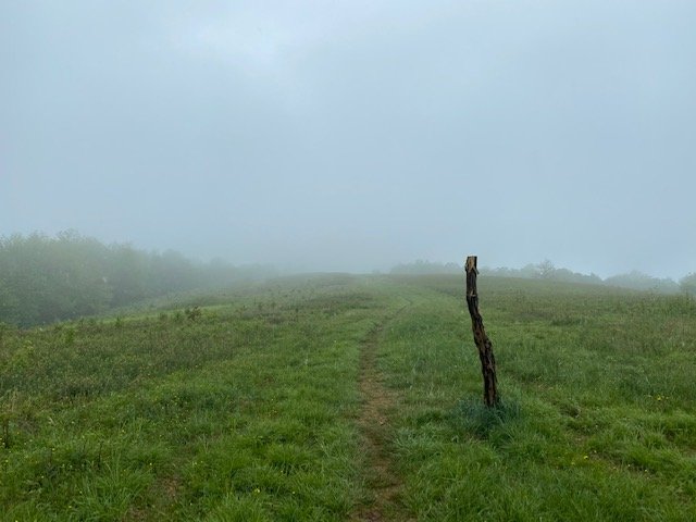 Cereal and milk for breakfast, plus coffee, and I’m out and on trail. A thousand-foot climb right out of the chute. This 17+ mile day is going to be a tough go. And it proves to be just that as the thunderstorms come in and the wind starts whipping in the afternoon–for the 2,200-foot climb to Chestnut Knob. I manage to make it to the old stone shelter on Chestnut just as the storm intensifies to a total deluge. Other hikers are huddled up, but make room for one more.