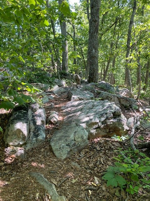 Late evening I finally reach the ledges (an outcrop of boulders), then Dragon’s Tooth. Both are memorable AT locations from previous passes thru.