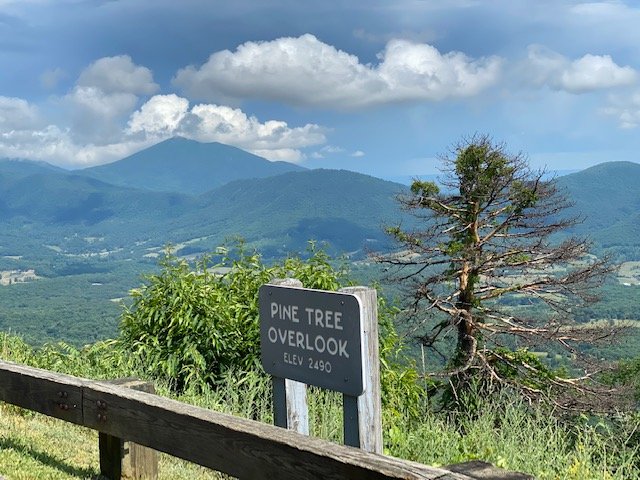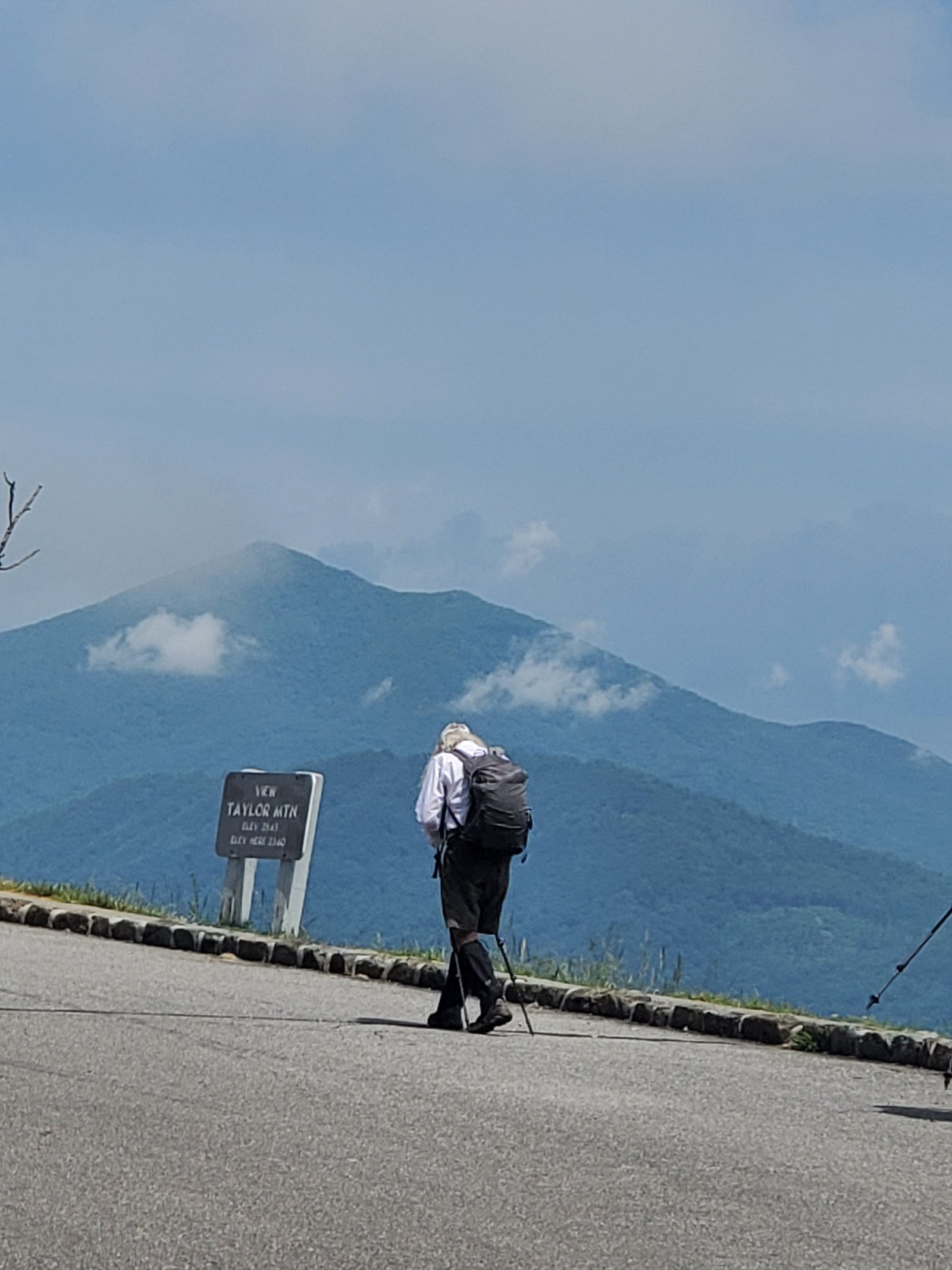 Well, today, after over two decades of delinquency I decide to reactivate my membership by hiking the Blue Ridge Parkway again, from Taylor’s Mountain Overlook to Peaks of Otter Overlook, a distance of some five miles. This short section of the AT is little more than a stepchild of the Parkway, following along below it, the views being mostly of the Parkway culvert pipes. And from the parkway there? Glorious vistas–Taylor Mountain, Pine Tree Overlook, and the magnificent and mystifyingly Peaks of Otter (from where can be heard the Pipes of Pan). None of these views can be clearly seen from the trail.