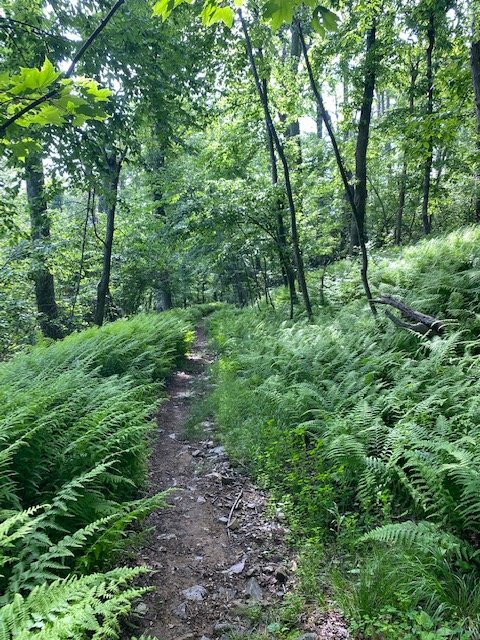 Another climb first thing this morning to Fullhardt Knob. Then comes a bunch of ups and downs across spurs and into ravines, with the last climb (before reaching the Blue Ridge Parkway) being in excess of 800 feet.