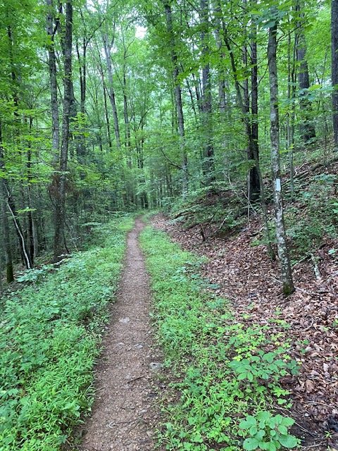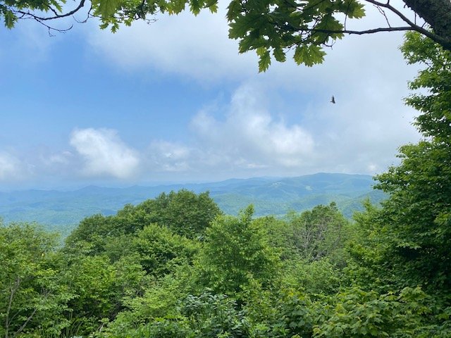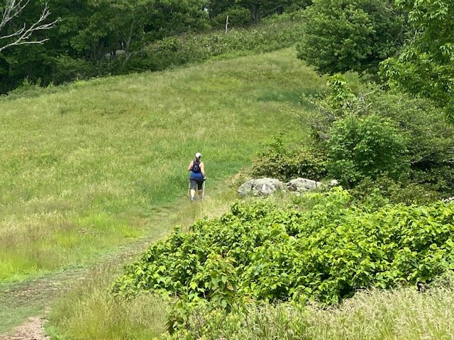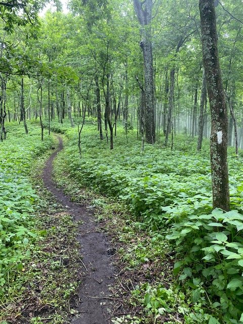 We’ve had close to 5,000 feet of climbing today and we’re both very tired. However, after the long, energy sapping day we’re rewarded with an amazing walk across a high mountain meadow. The clouds part just long enough for a view of the rugged Virginia Blue Ridge. Could not have had a better time!