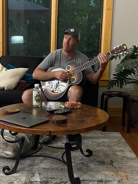Evening, it’s back to Wintergreen Resort and the beautiful Airbnb home. Gail Safari Baldwin from Delray Beach, Florida, has driven two days to come support me for this coming week, and she’s made it here this evening. T-Bone & Tulip order in pizza, then T-Bone entertains us by singing and (this time) playing his steel guitar.