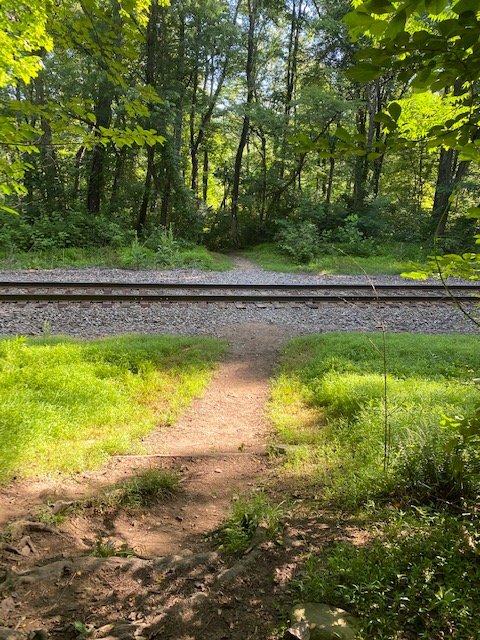 The trail has dropped down and passes through a rural farming community. From Fiery Road I enter open pasture, first to climb then descend to the John Marshall Highway and -I-66. And so, the din from the highway and interstate traffic continues, accompanied by the shrill noise from the planes approaching Washington DC.