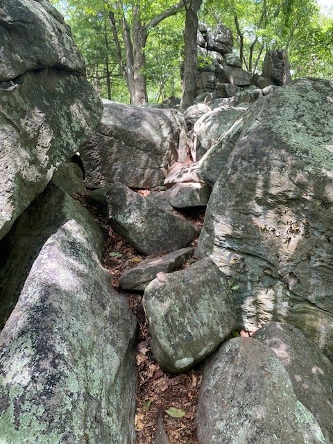 Lucky has prepared sandwiches for us and we stop for lunch and rest awhile before tackling the final climb for the day, up and over Rocky Mountain (appropriately named). Hikers go boulder hopping by me as I stumble and tumble around and through them. I take a good fall but am none the worse for wear. Relieved to have this day behind me though. Broke fifteen-hundred today. Eleven-hundred to go to finish Odyssey 2021 – Bama to Baxter – Hike On!