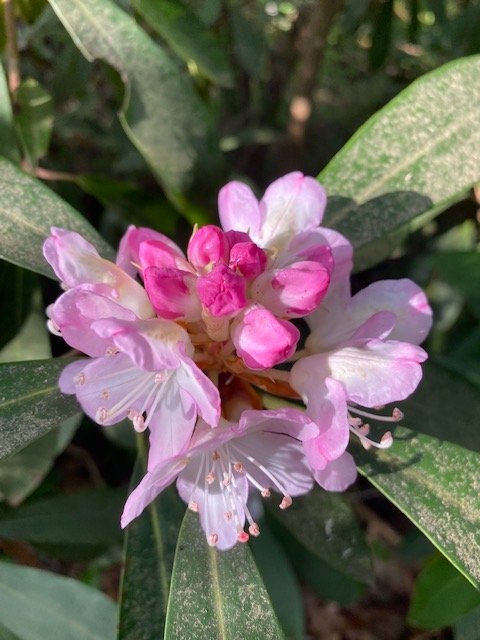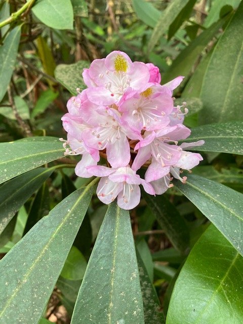 The rhododendron maximum, which has a large pink-white blossom, is blooming now in Pennsylvania. I get a few pictures today. The flower is truly magnificent.