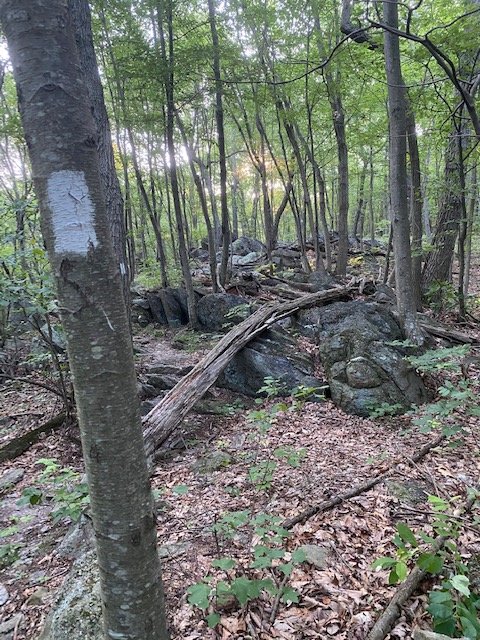 More difficult climbing first thing, up and into another cobbed-up heap of boulders. Going to be a slow (very hot and humid) day. Three o’Hearts has stayed back to interview Lucky & Nimrod. So, she’ll be hiking in to meet me from the opposite direction later today.