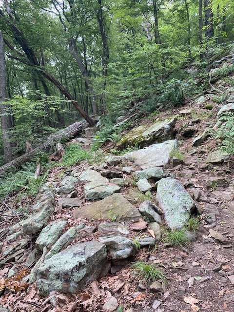 We’ve a short hike today, yet it’s a real struggle getting through the boulder cob and the rocks–over four hours to reach PA-223, Peters Mountain Road.