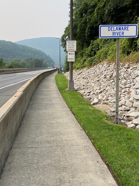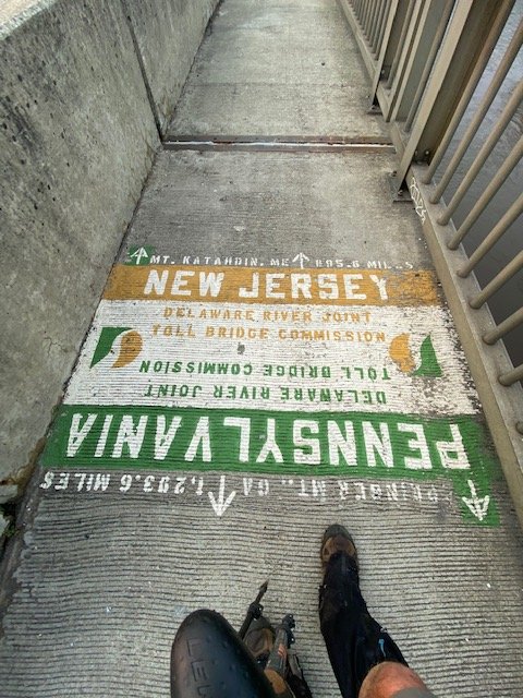I manage to get out and going a little after seven–to cross the busy Delaware River Bridge. A scary place; I’m not used to concrete moving under my feet.