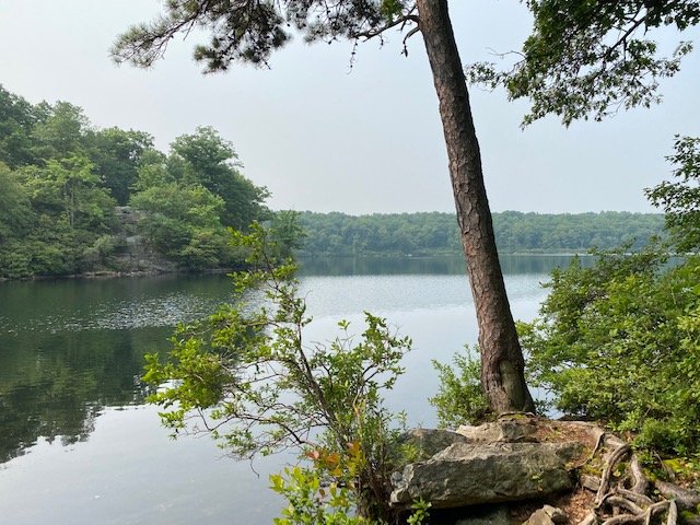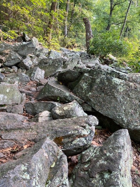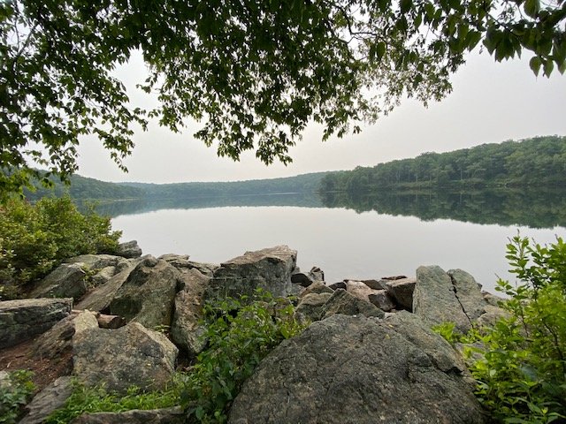 Once across (and into New Jersey), the trail climbs, to pass Sunfish Pond (the first glacial feature on the trail) then on up to Raccoon Ridge, and finally Catfish Lookout Tower. More rocks to stagger around in. Same as the Pennsylvania rocks; they’re just called New Jersey rocks now.