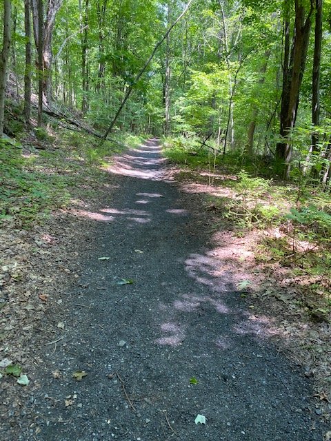 This is going to be a long hiking day, but I’ve been told the rocks and boulders back off–after the climb to High Point. And that’s pretty much how I find it. The climb up to New Jersey High Point is the typical rock and boulder scramble, but then the rocks and boulders pretty much go away, leaving delightful hiker-friendly tread!