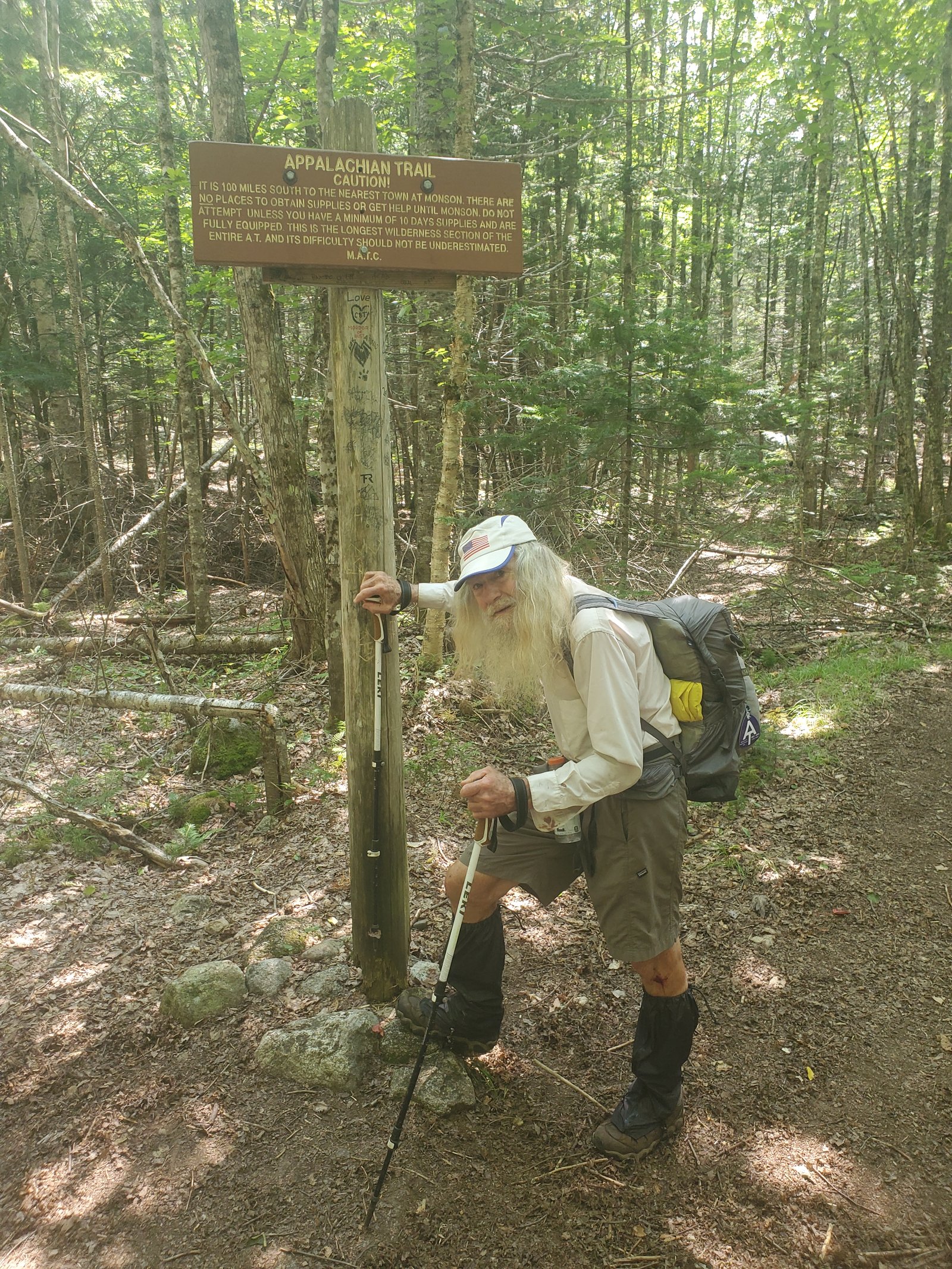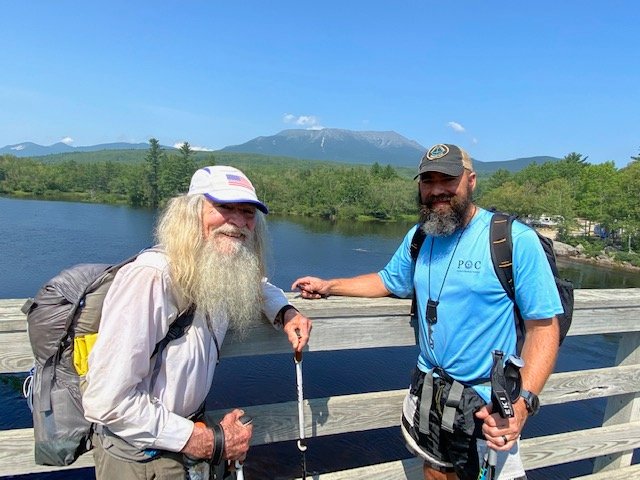 Early afternoon we put the 100-mile wilderness in our rear view as we leave it behind to emerge at Abol Bridge. Here, the Appalachian Long Distance Hikers Association (ALDHA) has set up a trail magic table where we meet trail angels Ken Nimbus Bunning, his wife, JoBeth, and Dennis Newton. Ken is the current chair of ALDHA. Hot meatball subs, ice cold drinks. What a great way for ALDHA to interact with long-distance hikers–and what a treat! Besides we hungry, thirsty ones, they’ve provided trail magic to over two dozen weary strugglers coming out of the 100-mile–thanks ALDHA!