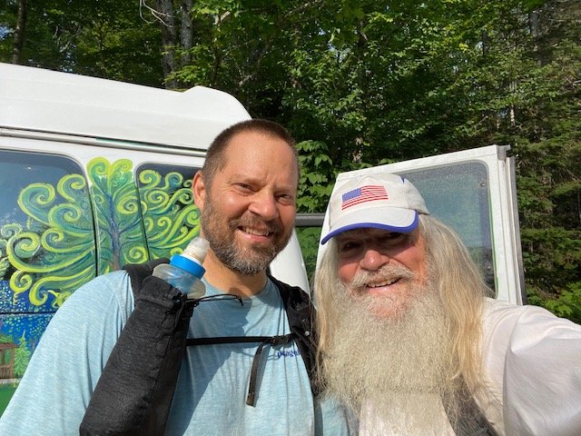 I thought I had my pack (and me) ready to go but I miss the first shuttle to ME-27. So, soon as Justin returns from the first run, he offers to do a special run for me. On the porch and putting my shoes and socks on, just for that moment, I’m entertained by fellow thru-hiker, Ketchup. A happy fellow, uplifting, country kind of twang, his style, fingers flying across the guitar strings for backup. ‘Twas only a click in time, but to me–a blessing our paths crossed. Thanks Ketchup!