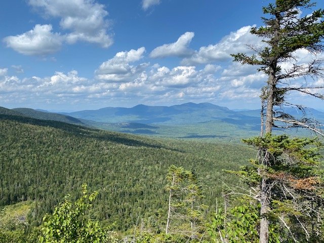 Another perfect day for hiking. I’m out and climbing by eight. And what a climb it turns to be, 2,800 feet of elevation gain in less than five miles to reach the summit of Crocker Mountain–very slow going, three hours, up through the boulders.