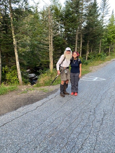 Here at The Cabin, Honey, Hopper, Rusty, and Jojosmiley, they’ve been a team, working together in every possible way to assure the success of my trek, Odyssey 2021 – Bama to Baxter – Hike On. This morning, breakfast (and steaming hot coffee) is set before me at six (not served guests until seven). Lunch has been prepared for me and sent along with Rusty, who will be hiking along and helping me today. Jojosmiley gets the two of us loaded in the hostel pickup, then drives us the 45-minutes up bumpy South Arm Road to deliver us to the trailhead there. Rusty and I are hiking right at seven!