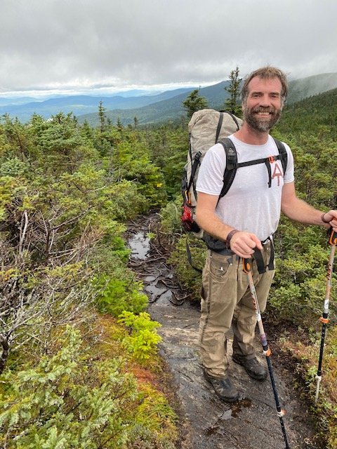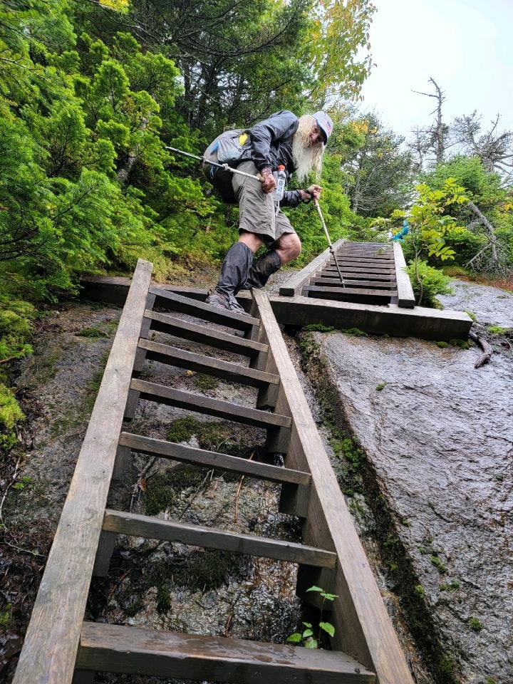 Hopper gets Odie and me loaded one last time, for the long shuttle run back up the mountain. She has us back to Mahoosuc Notch Trail and we’re headed up the two-mile blue blaze back to the AT, west end of the Notch. Another sad goodbye. Hopper, you’ve provided such needed help to me on this journey. You’ve prepared food for me, you’ve bandaged my wounds, and you’ve shuttled me great distances over the most god-awful roads. Thank you, Hopper–thank you!