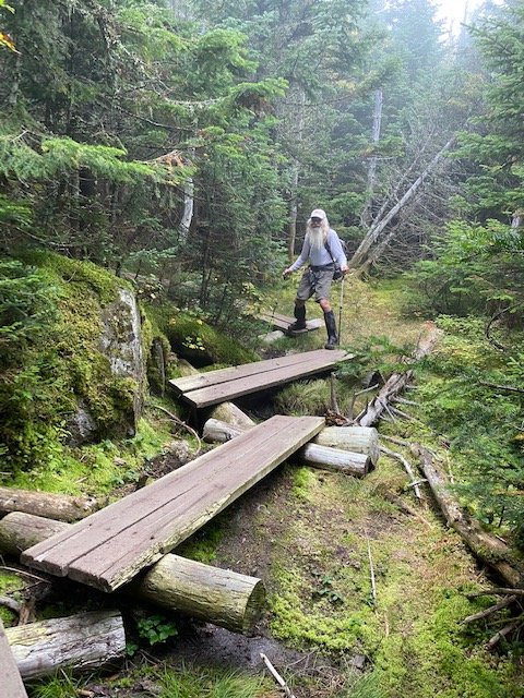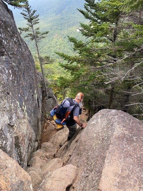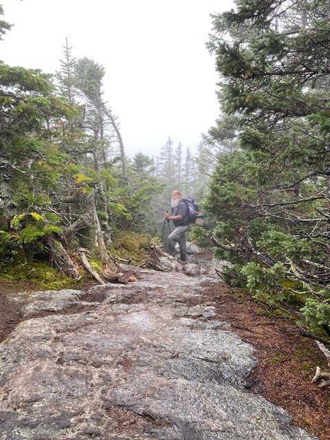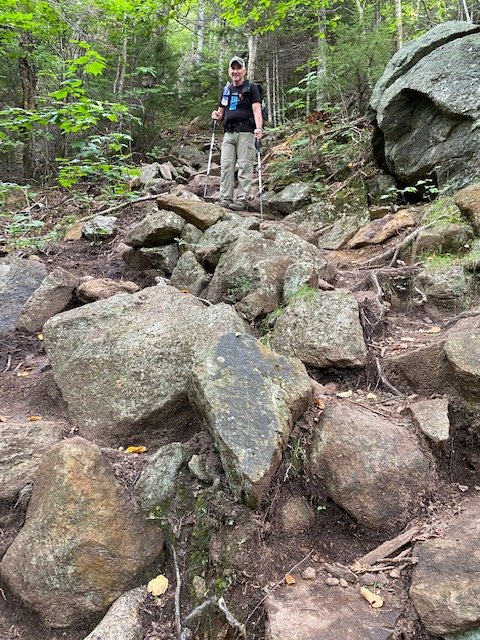More treachery, the boulder-strewn descent from Wildcat. We’ve a nearly straight down descent of 1,500 feet in a mile.