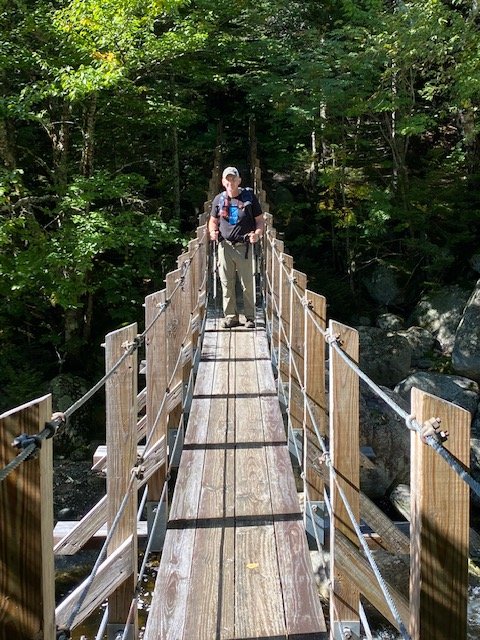 Over Madison, it’s less than 0.4 miles down to the hut, but the boulder-strewn descent takes an hour. The hut burned and has been rebuilt since I passed through back in 2000, so everything is neat and new. I get checked in just after four-thirty. Speedy & Copperhead have found a nearby spot to stealth camp.