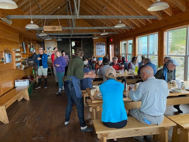 So, my first overnight was last night at the grand Madison Spring Hut. Tonight it will be the huge Lake of the Clouds Hut, which is located just below Mount Washington. Copperhead & Speedy tent camped near Madison Hut last night. Tonight they’ll be permitted to stay in “The Dungeon,” a small basement-like area under the hut main floor here at Lake of the Clouds. The “work-for-stay” option is available and has been offered to them, which includes bunk space, plus supper tonight and breakfast in the morning. For that privilege they’ll need to help clean up after breakfast in the morning.