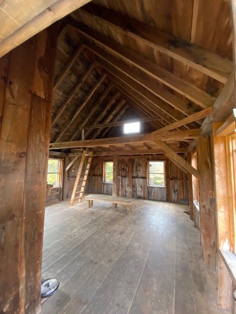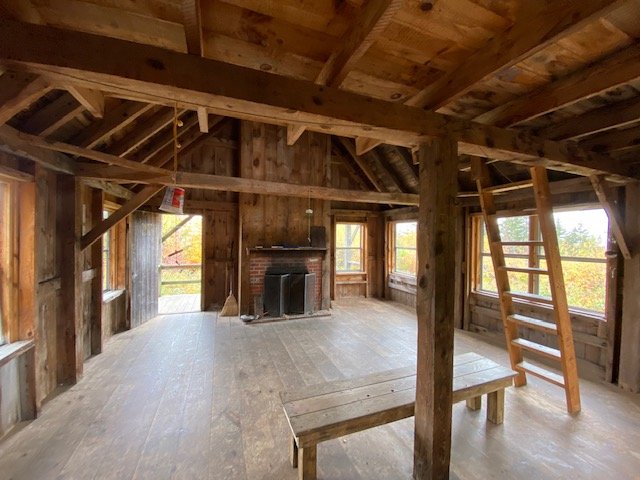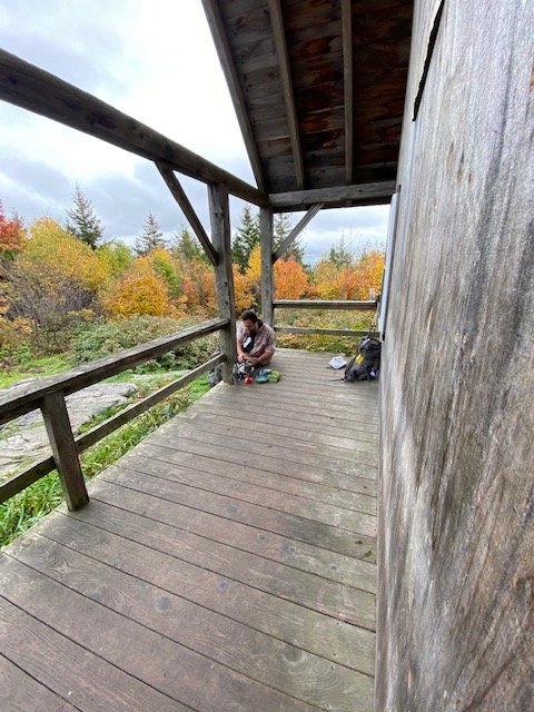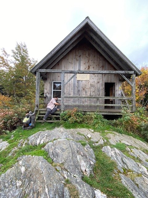 By late morning we’ve completed the ascent to The Lookout, a privately owned cabin belonging to Richard & Teresa Pet (Lookout Farm) is open to the public and has been made available to hikers. A side trail leads there, a short distance up from the AT. Kitchen Sink & I take it. My goodness, what a special place! The cabin is typical in design–a large room with cathedral ceiling, a step-like ladder leading to the spacious loft. And of course, a fireplace built into the front wall. The whole structure, beams, framing, siding, all made from full-dimension rough-cut lumber.