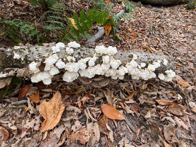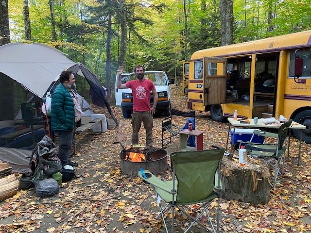 We hike right to the campsite set by Barry at Gifford Woods State Park, as the trail goes right up the park road. What a wonderful surprise as evening descends–in comes Odie in his old church bus. He’s on his way home to Alabama, and not being far off his chosen route, has decided to spend the night with us.
