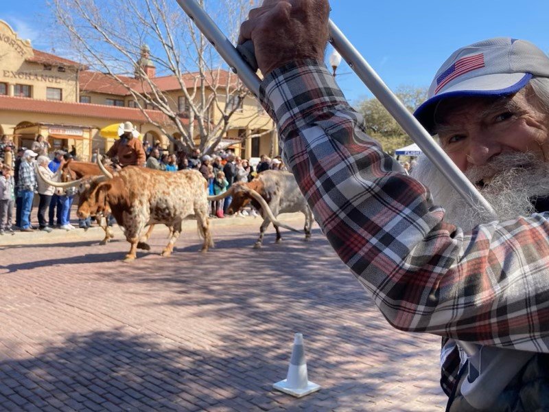 longhorn ca+le drive at the stockyards in Fort Worth, TX. I think he had a fantastic time