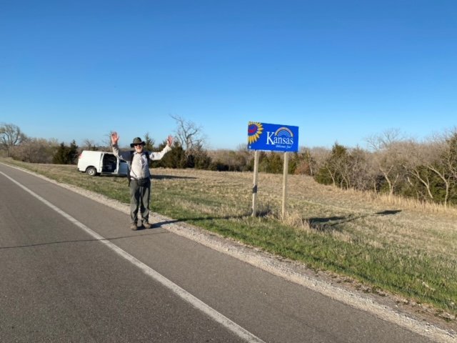 As the hike goes, Bart entered Kansas last Monday. He’s been knocking down 20+ days and is now in Wachita (the 6th). If weather permits and he continues on schedule, he‘ll reach trail’s end in Abilene next Tuesday (April 11th).