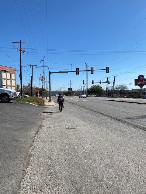 The hike today was hammer-the-sidewalks the entire time. Hard to imagine longhorns being driven through here. Nothing but pavement and stoplights now. And much more of the same to come, as this trek will be one long roadwalk, pretty much the entire way.